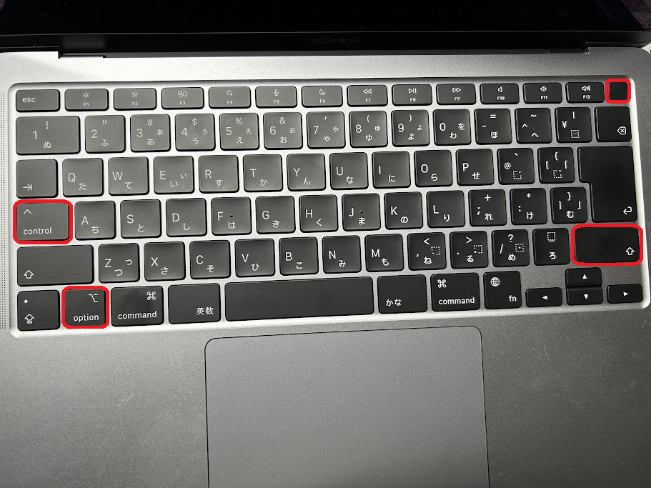 ※預かったMacBookは「Macのファームウェアを復活させる/復元する方法」の「復活または復元のためにノートブックを準備する方法」の図とキー配列が違いました